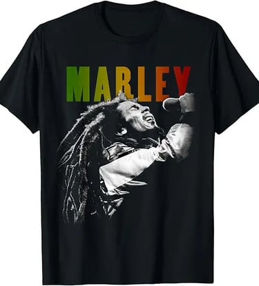 Celebrate reggae spirit with Bob Marley tees, rasta jewelry, and more.